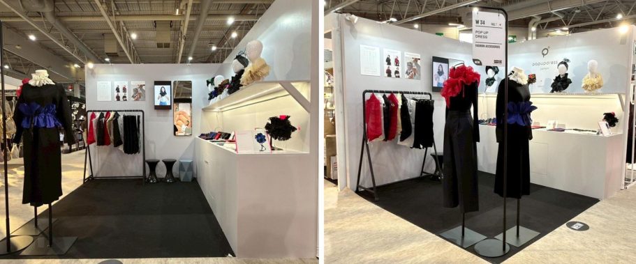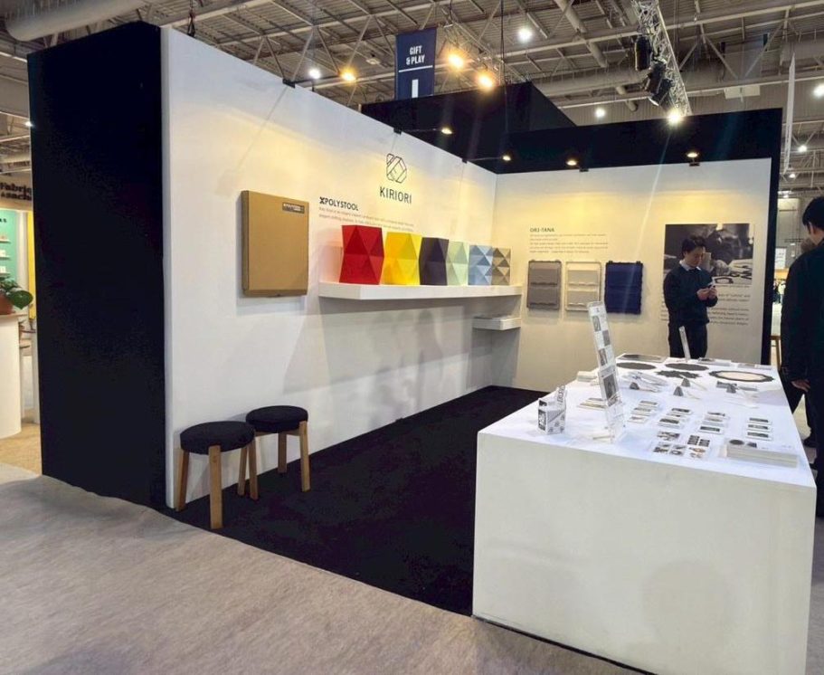 Stand moderne et épuré, conçu pour mettre en valeur des textiles japonais haut-de-gamme. Il se distingue par une structure minimaliste en blanc immaculé, doté d'étagères intégrée permettant une présentation soigner des produits. Un éclairage directionnel met en avant chaque détail, assurant une visibilité optimale des articles exposé. Parfait pour créer une expérience expérience professionnelle et esthétique, lors des salon et évènements.
