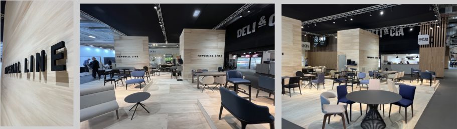 Ce stand est conçu pour offrir une organisation claire et fonctionnelle. Avec des étagères en bois intégrés dans un fond bleu profond, il permet une exposition linéaire et esthétique des produits en papier. Les panneaux rétro éclairé et les tables en bois brut offrent une harmonie visuelle entre modernité et simplicité, tout en mettant en avant la qualité des articles exposé l'espace est passé pour faciliter l'interaction avec les visiteurs, tout en valorisant le design des produits.